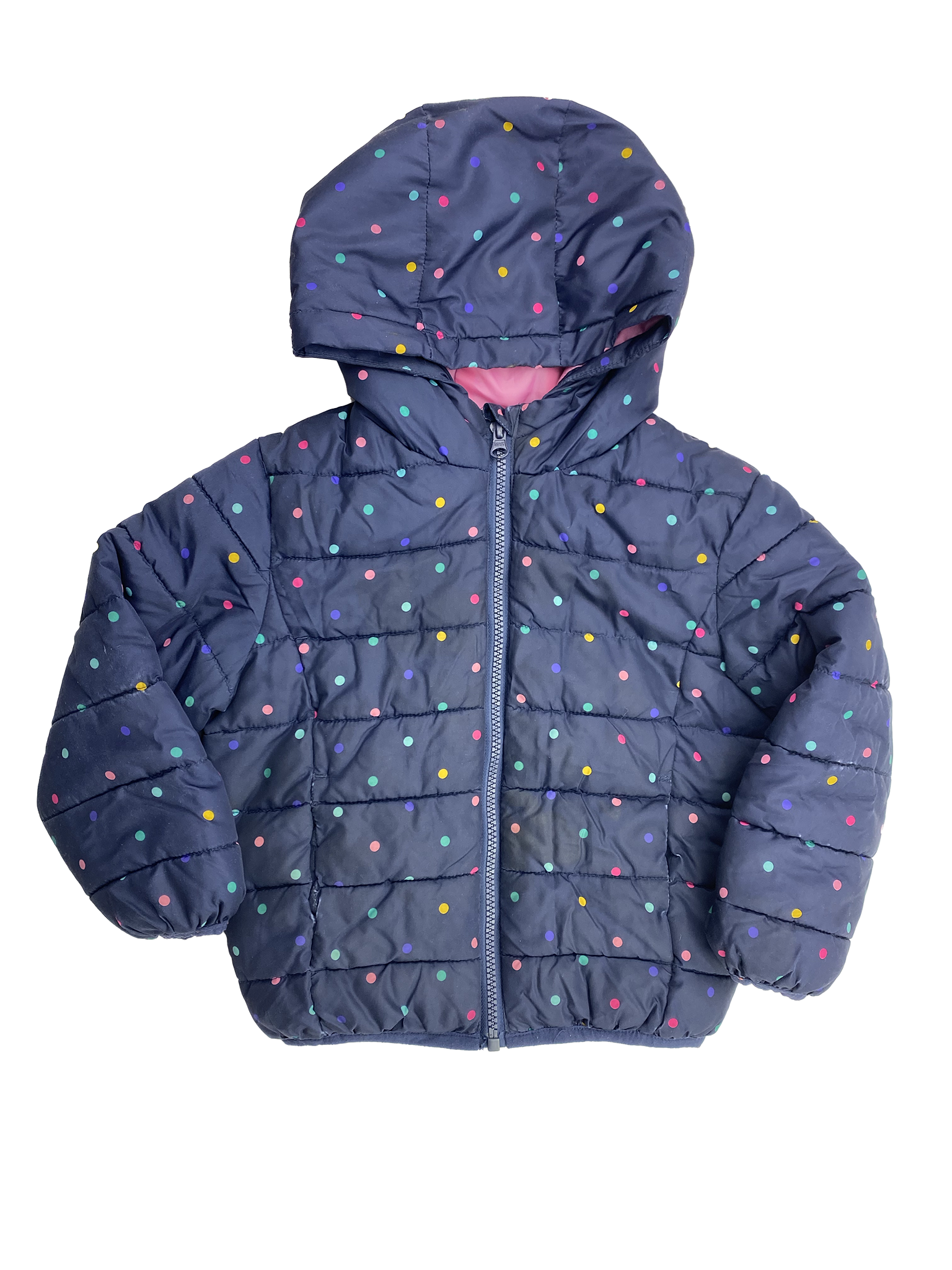 George Navy Puffer Jacket with Multicoloured Polka Dots 5T