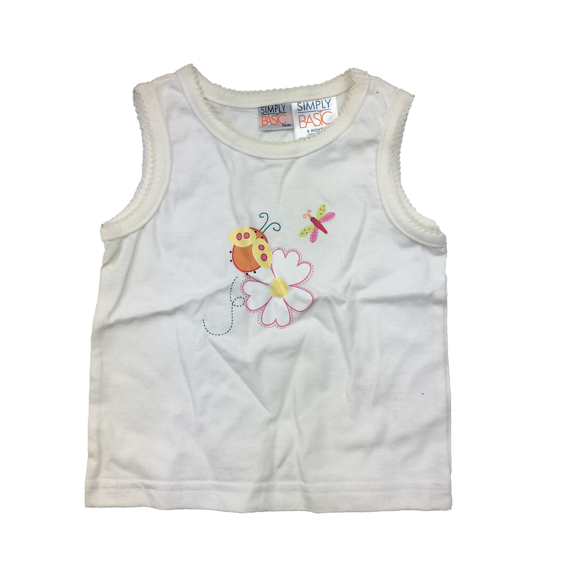 Simply Basics White Tank Top with Ladybug and Flower & Butterfly 6M